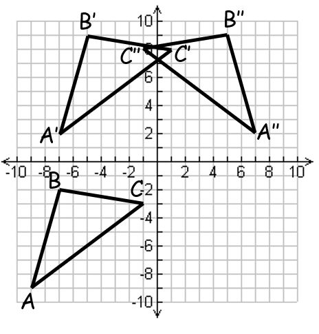 Perform the transformations below in the order listed, give the coordinates of A', B', C', A'', B'', C'', and then graph both \triangle{A'B'C'} and \triangle{A''B''C''}.