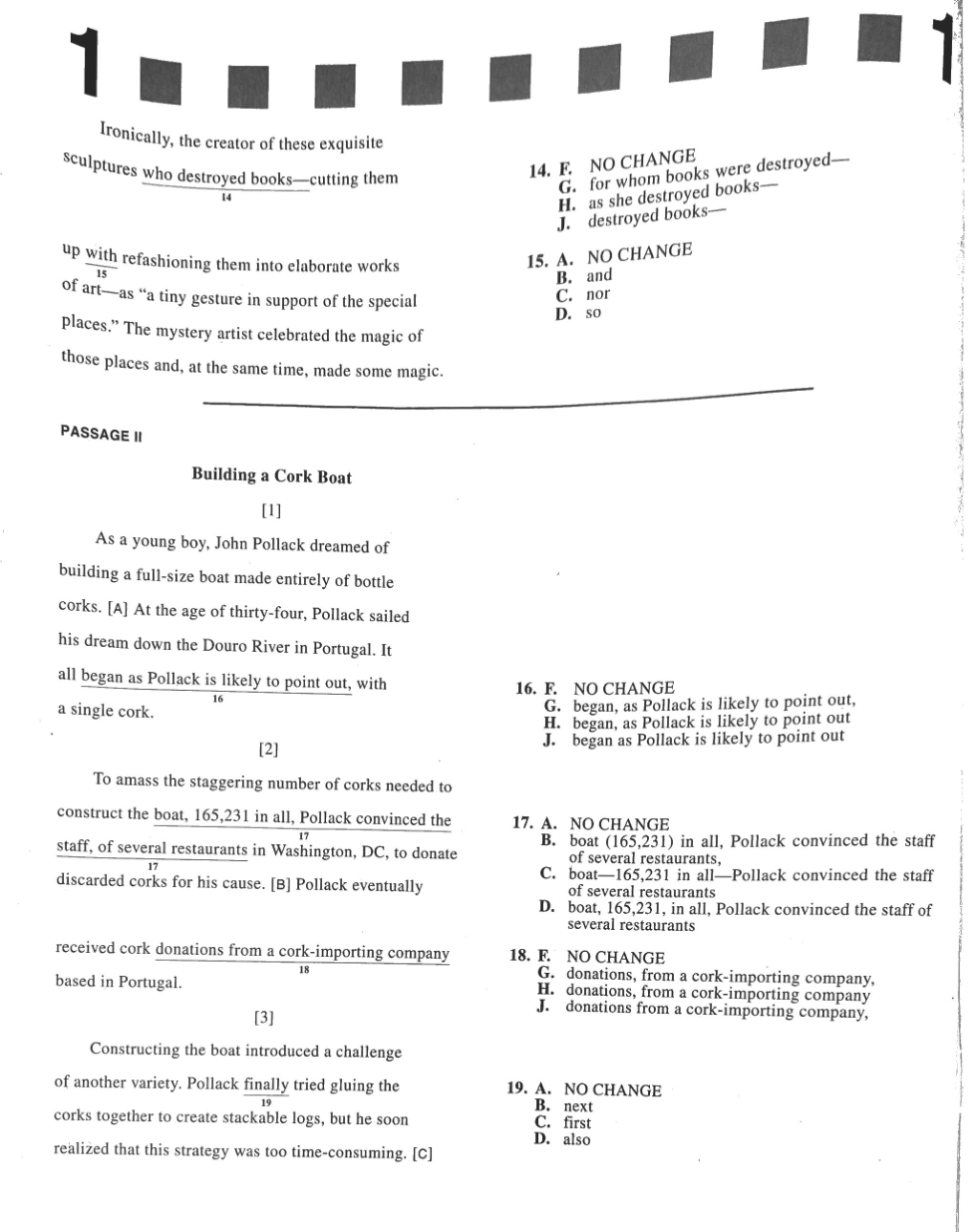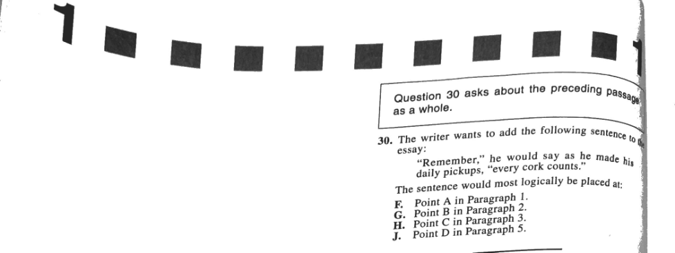 The writer wants to add the following sentence to the essay: "Remember," he would say as he made his daily pickups, "every cork counts."