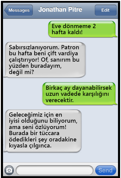 Aşağıdaki kısa mesaj konuşmasından ne çıkarımda bulunabilirsiniz? Geçerli olan her şıkkı seçin.