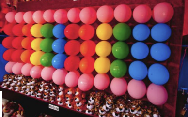 You go to the San Diego Fair and play a dart game where if you throw a dart and pop a balloon you win a prize! If you pop a yellow ballon you win a JUMBO PRIZE!