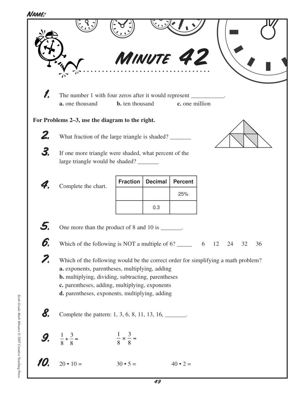 If one more triangle were shaded, what percent of the large triangle would be shaded? _______