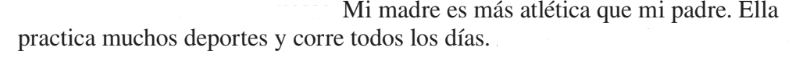 Mi madre es más atlética que mi padre. Ella practica muchos deportes y corre todos los días.