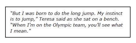 Which event in the story causes Teresa to reevaluate her talent as a long jumper?