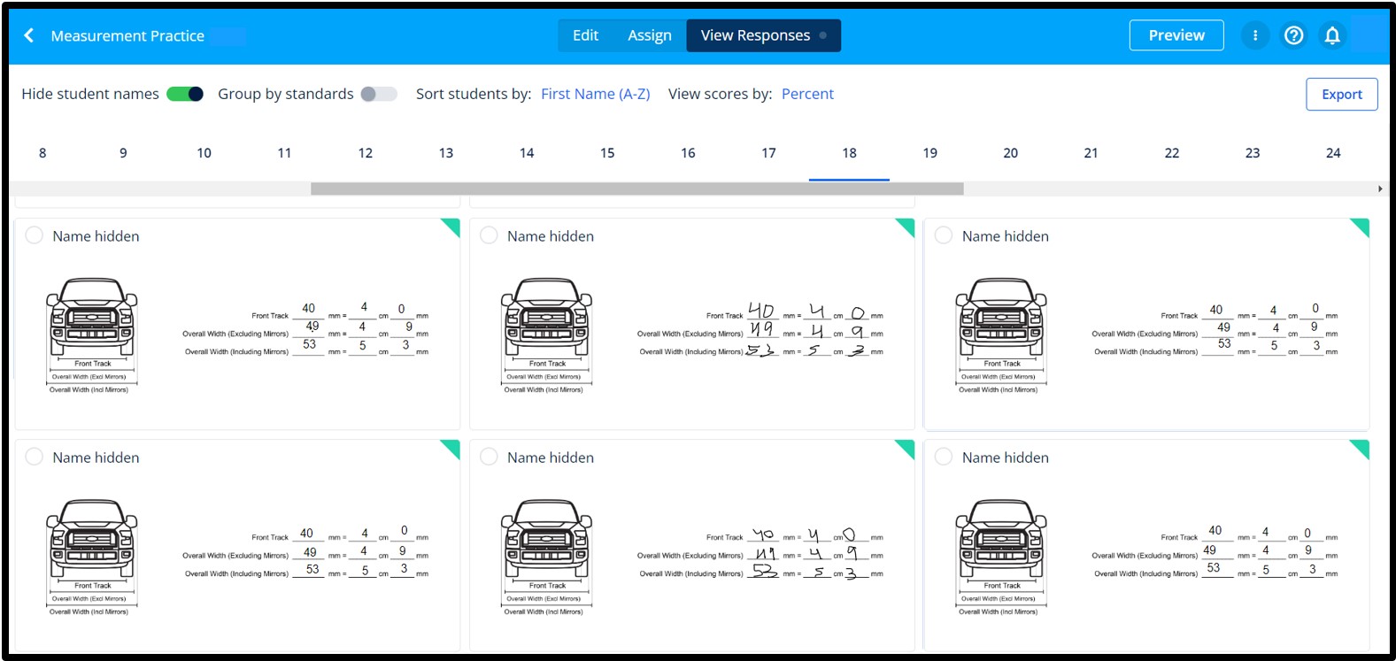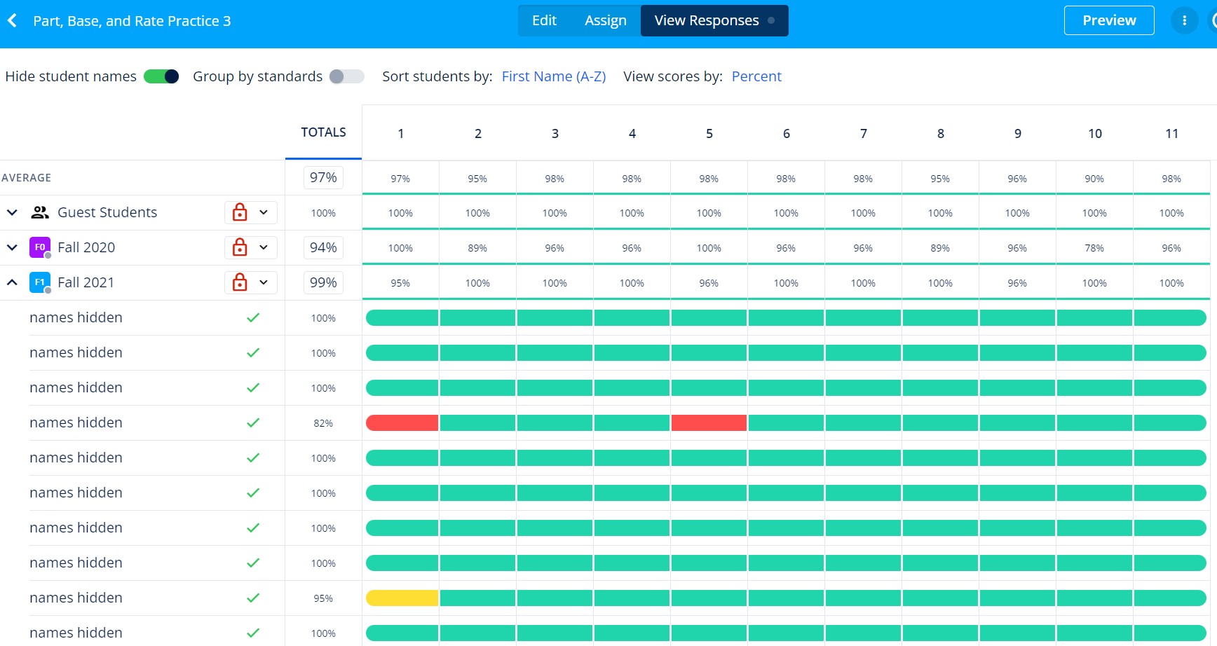 For me, this feature was the most valuable feature. The benefits became evident, both in student attitudes and performance. With Formative’s color coded system (correct answers marked green and incorrect answers marked in red), I could instantly observe if a student was struggling, and quickly intervene, before they learned a concept the wrong way. I think my students appreciated the frequent in-person feedback I gave in class. Toward the end of the semester, I had students asking me to check their answers as they worked. You could see the inward pride in the student’s posture and body language after they learned that their independent work was correct.