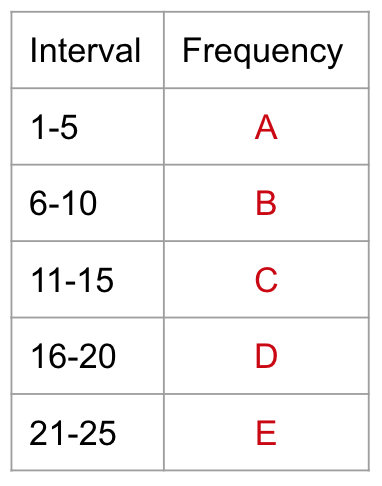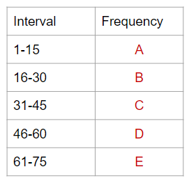 How would you group the data into intervals for a histogram? The first interval has been done for you. There should be no spaces in your responses.