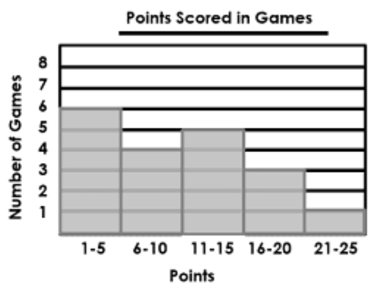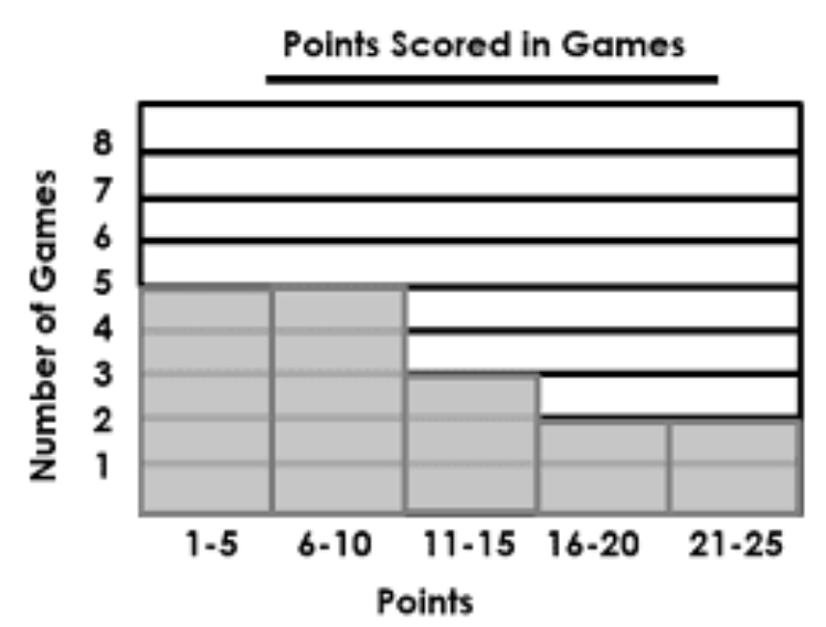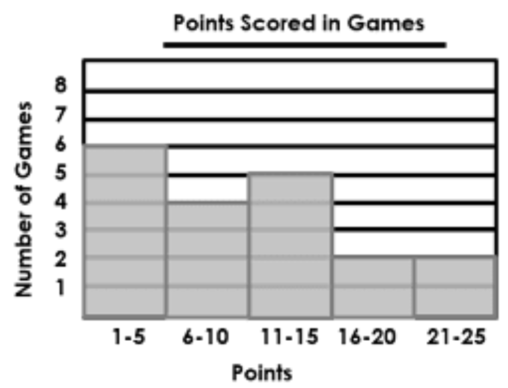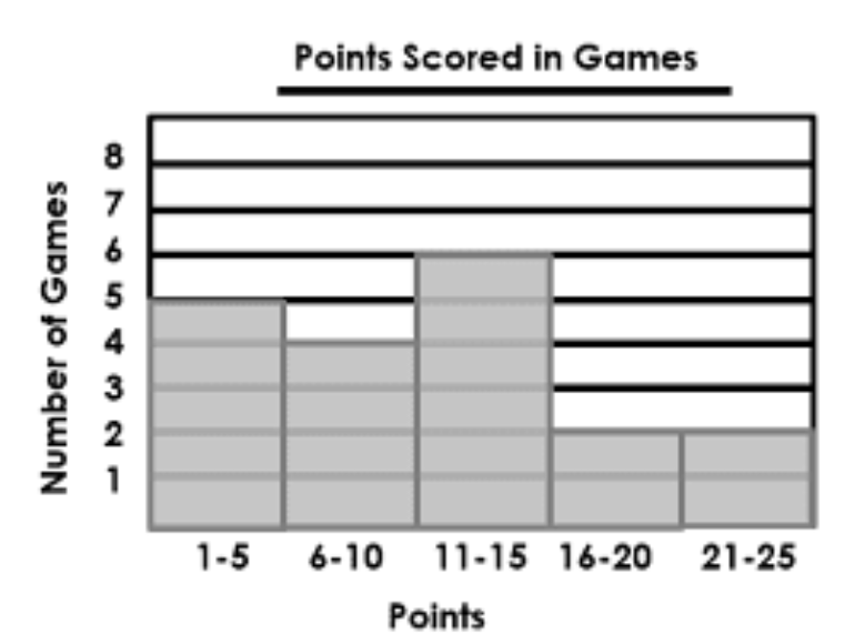 Which histogram correctly displays the data about the points Hayley scored during her games? 5, 12, 7, 10, 25, 2, 15, 8, 13, 4, 5, 22, 18, 11, 9, 17, 14, 3, 2