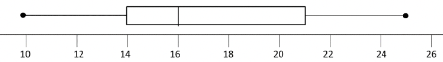 The data below shows the number of minutes a group of customers had to wait for their pizza to be delivered on a busy Friday night. Select a conclusion that can be drawn from the box plot.