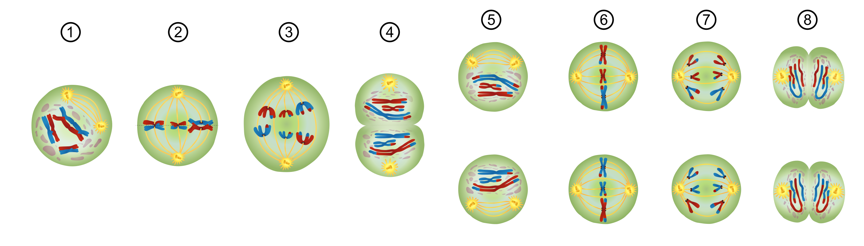 Label the phases of Meiosis (be sure to be specific with I or II). Open the image below and insert text into the numbered boxes by clicking the "T" button on the toolbar to the right.