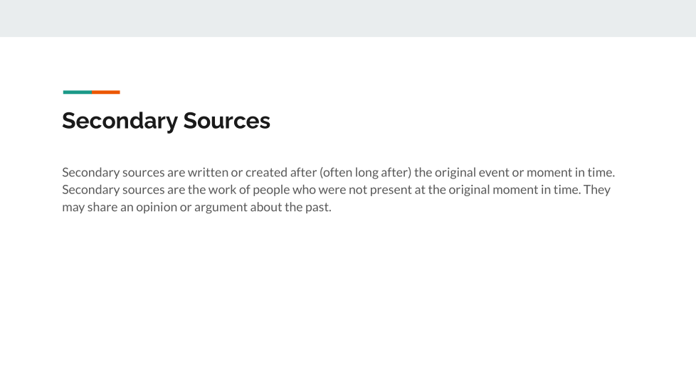 Write the definition of a secondary source.