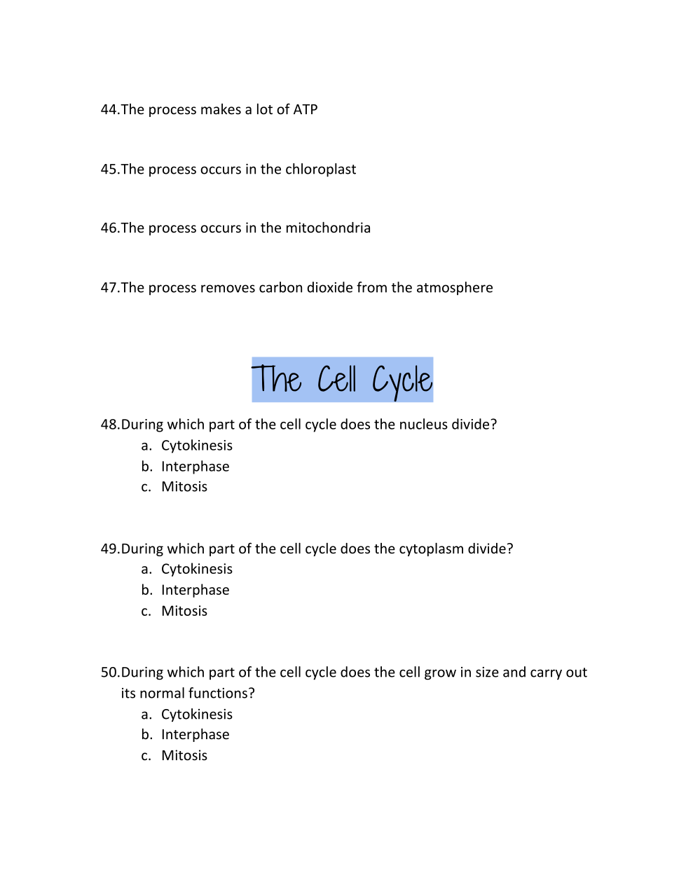 During which part of the cell cycle does the cell grow in size and carry out its normal functions?