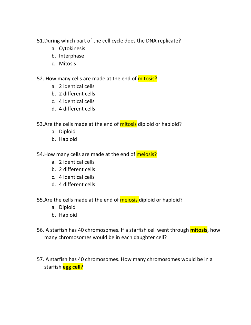 A starfish has 40 chromosomes. If a starfish cell went through mitosis, how many chromosomes would be in each daughter cell?