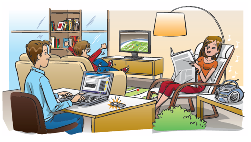 Observa com atenção a imagem anterior. Seleciona todos os meios de comunicação pessoais e sociais que podes observar.