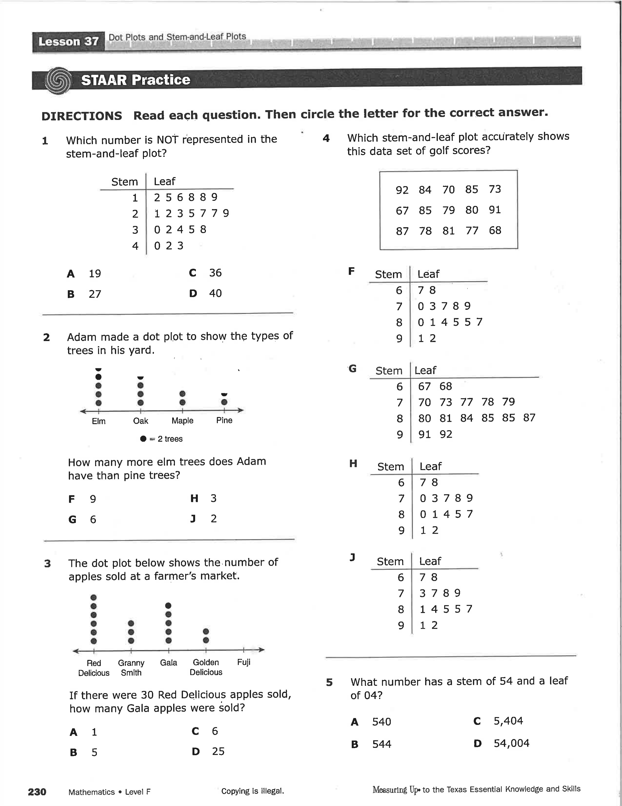 Week 6: Advanced Math- Stem and Leaf Plots