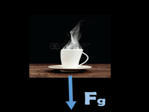 The Coffee cup in the picture is resting on a table. What force(s) are missing from the free body diagram?