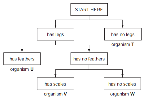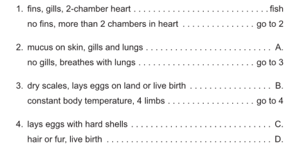 The diagram shows a key for five vertebrates.