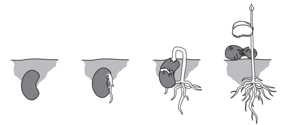 The diagram shows how a seed changes after it is planted in well-watered soil.
