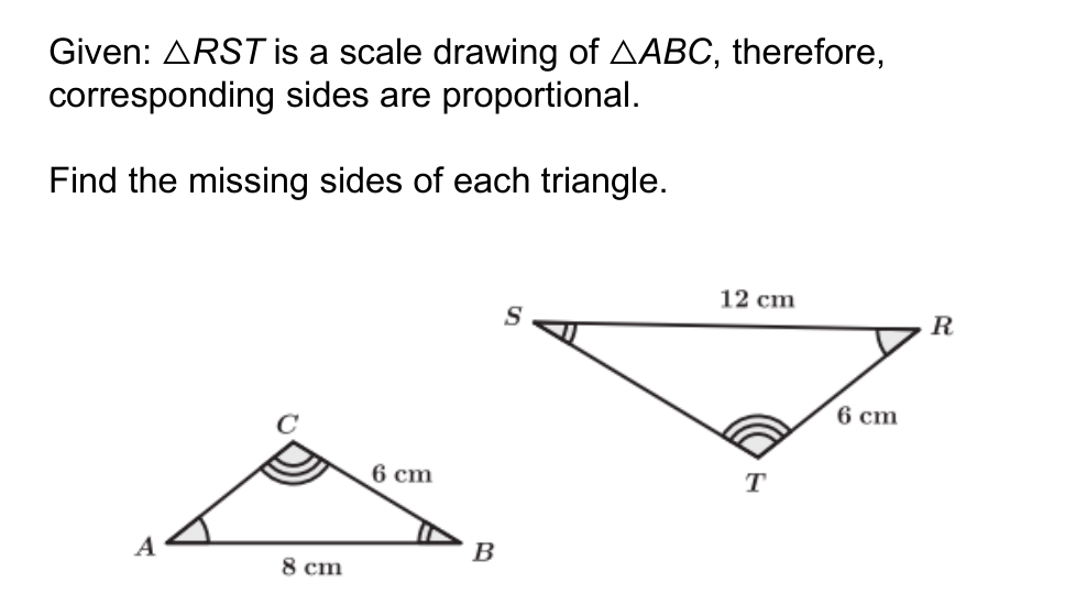 Find the missing sides of each triangle.