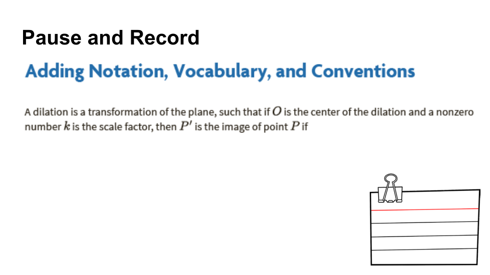 En esta lección, ampliamos nuestra comprensión de figuras similares. Dado que los segmentos correspondientes de figuras similares son proporcionales y las dilataciones producen figuras similares, las partes correspondientes de una imagen y su preimagen después de una dilatación son proporcionales. También aprendimos que los segmentos de línea correspondientes en una dilatación son paralelos. Estas dos observaciones proporcionaron una herramienta para probar un teorema sobre la línea media de un triángulo, un segmento que conecta los puntos medios de dos lados de un triángulo.