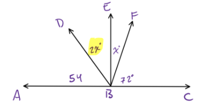 Angle Equation--Use the following diagram to write and solve an equation to find the measure of \angleDBE.