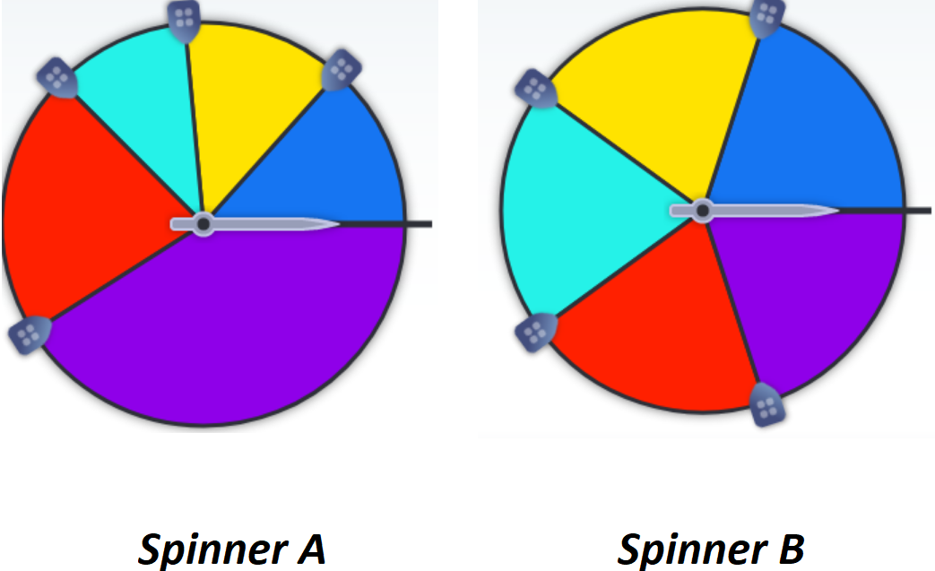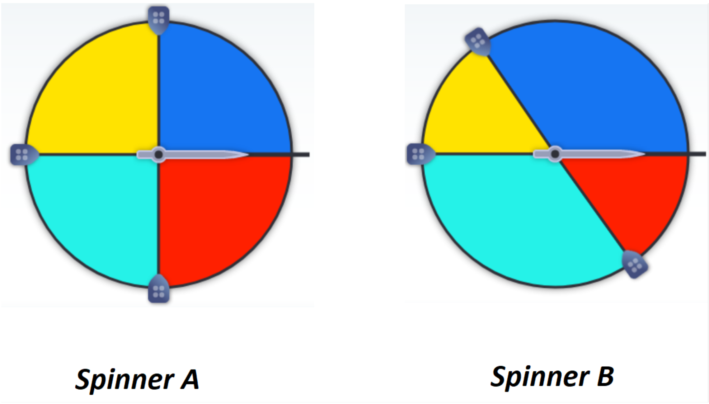 A/B--Ms. Santoyo creates two spinners that both have 4 colors each.