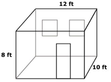 The room is shaped like a rectangular prism with a height of 8 feet, length of 12 feet, and width of 10 feet as shown.