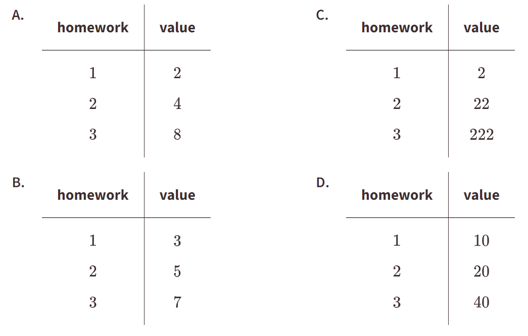 ¿Qué tabla(s) de valores podría(n) representar esta situación?
