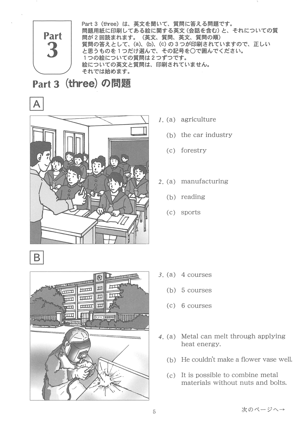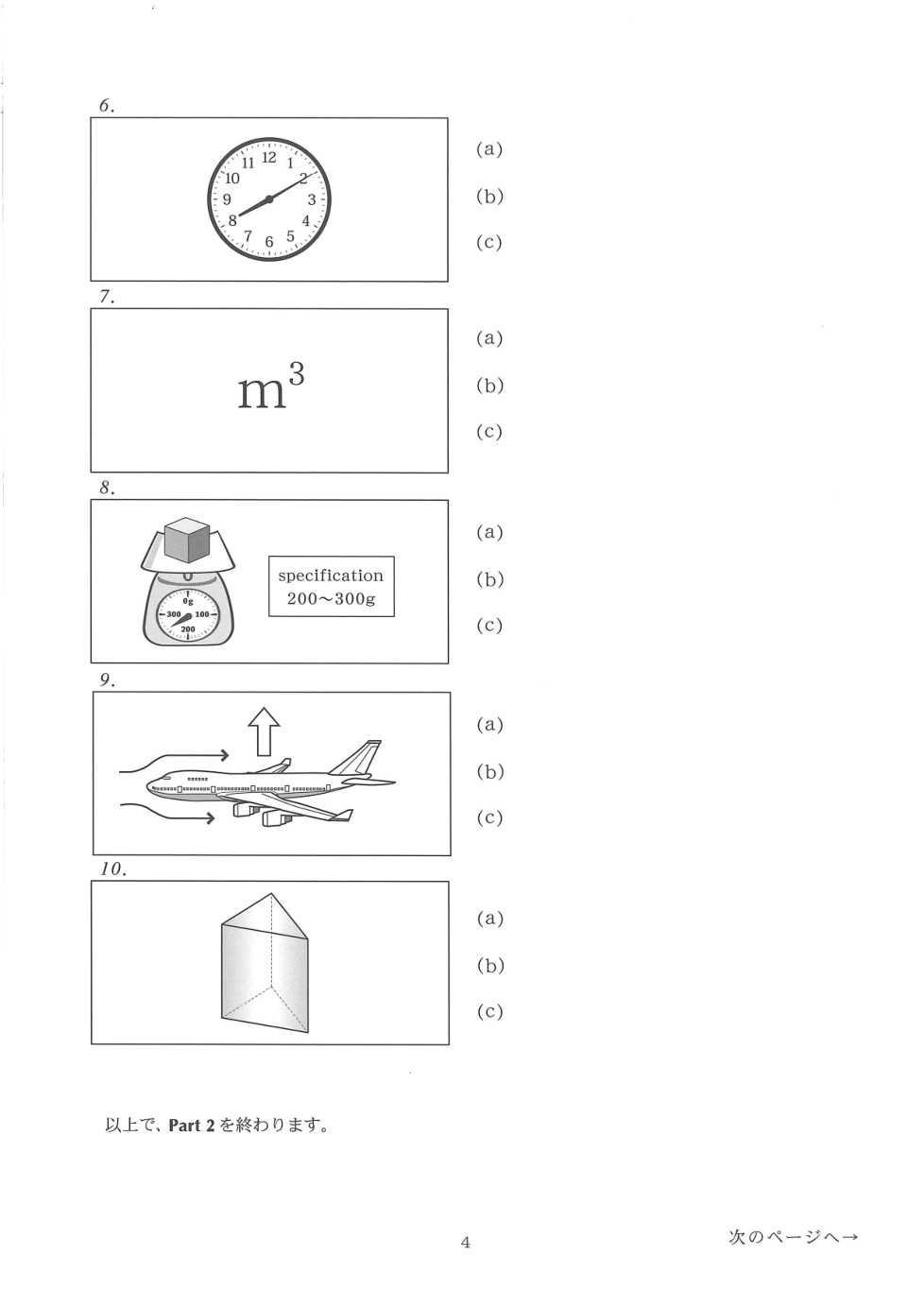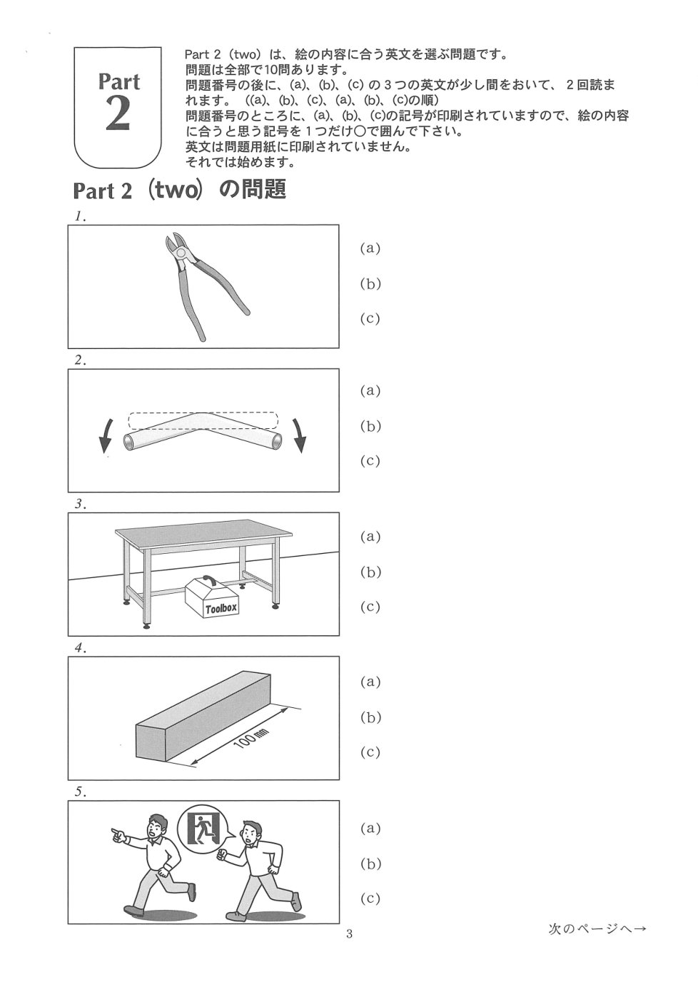 音声を聴いて質問に答えなさい。
