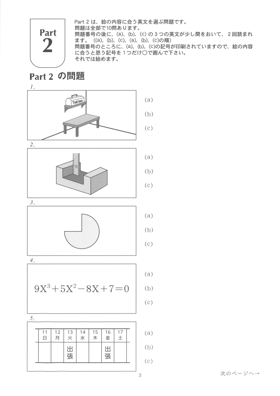音声を聴いて質問に答えなさい。