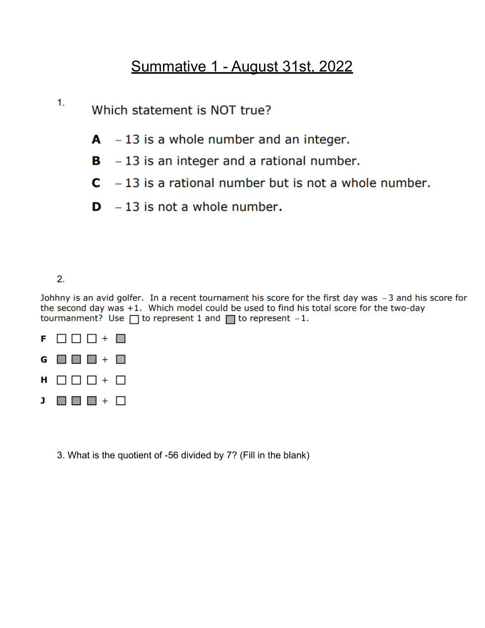 8/31 - 6th Grade Math - Summative 1