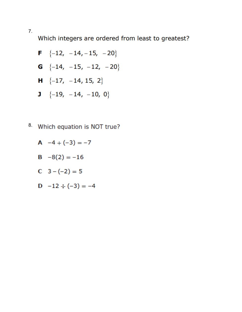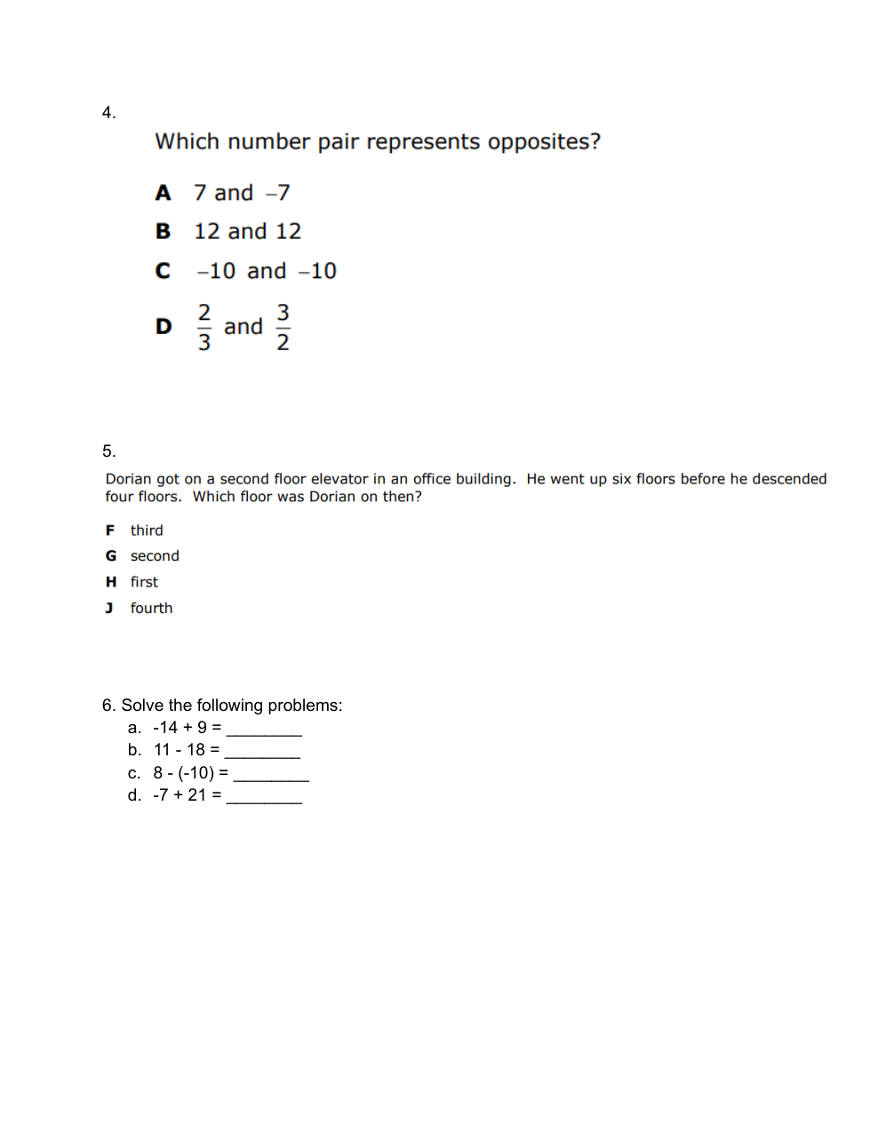 Classifying numbers, absolute value, ordering integers, operations with integers