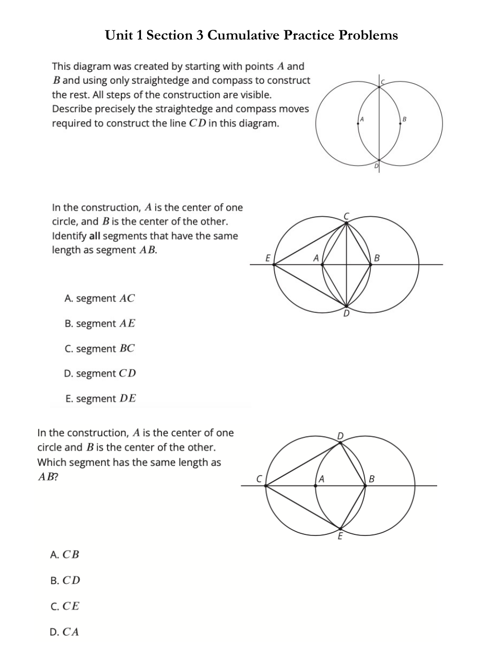 Starting with only points A and B, reorder the steps below to construct the diagram.