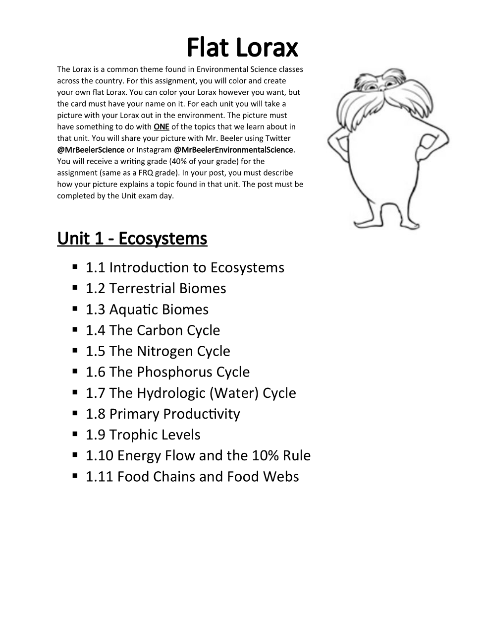 What questions do you have for Mr. Beeler about the Flat Lorax or Unit review notebook?
