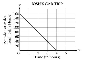 Josh takes a road trip. On his way back he records his distance from home and his driving time. He makes a graph with the results. Which set of values below comes from this graph?