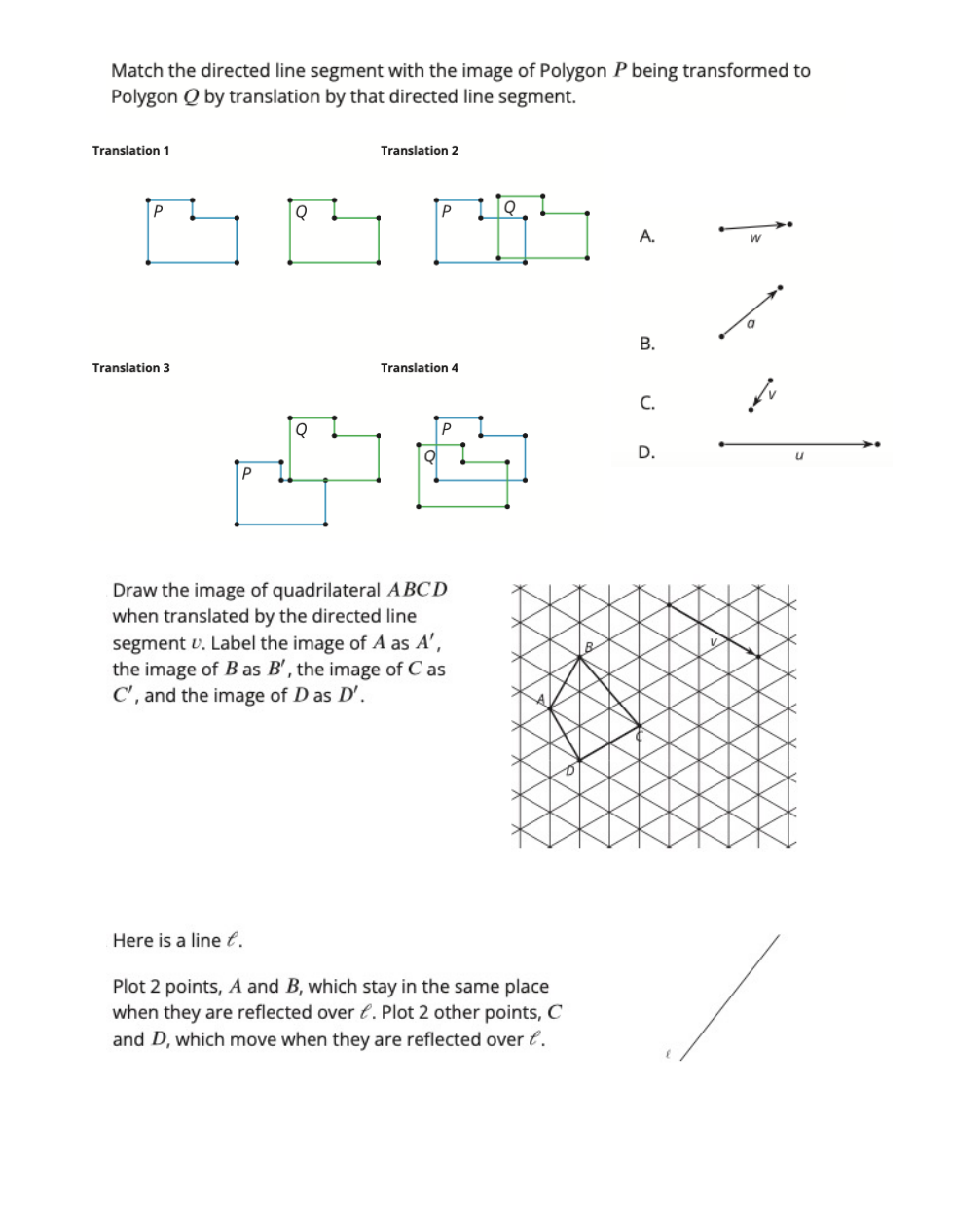 Match each translation with the directed line segment that takes polygon P to polygon Q.