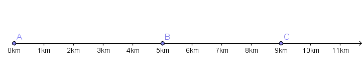 An object moves from point A to point B to point C, then back to point B and then to point C along the line shown in the figure to the right.
