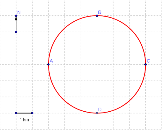 An object moves from point A to B to C to D and finally to A along the circle shown in the figure to the right.