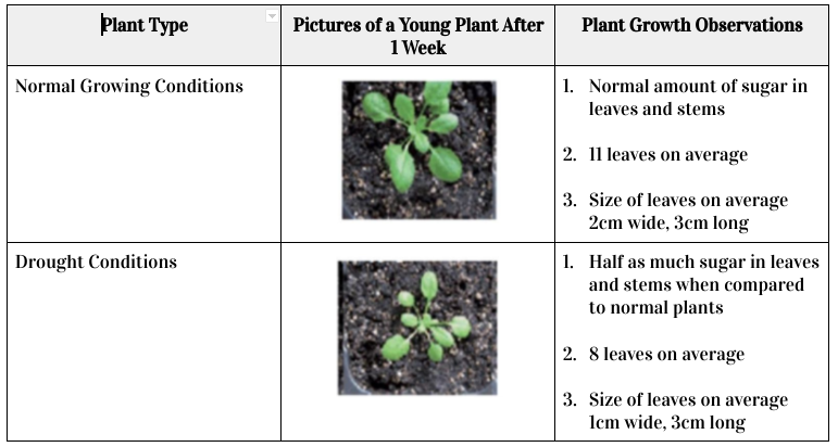 Use the evidence from the table above to construct an explanation of how the drought affected photosynthesis and plant growth.