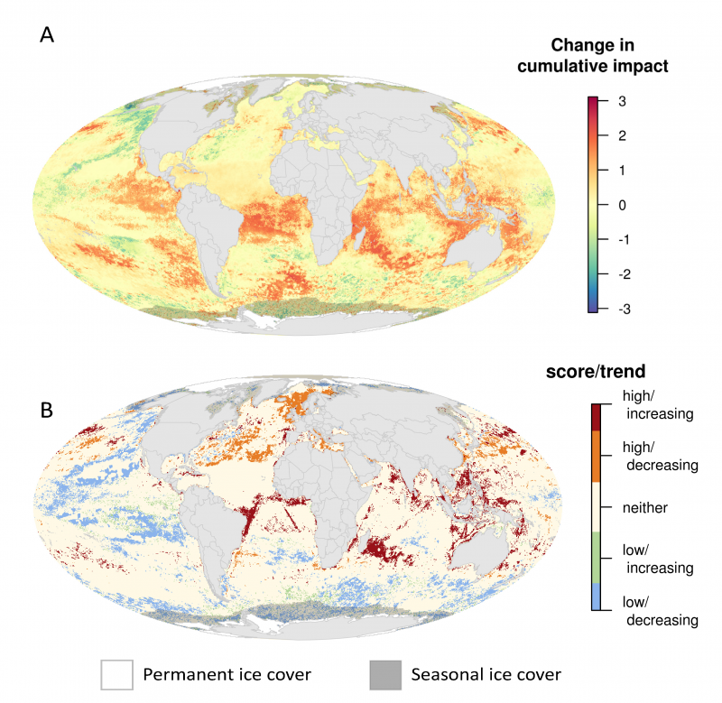 Then answer the following questions:- What percentage of the world’s ocean is unaffected by human impacts?