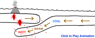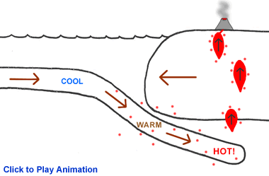 When continental and oceanic plates collide, the thinner and more dense oceanic plate is overridden by the thicker and less dense continental plate. The oceanic plate is forced down into the mantle in a process known as "subduction." As the oceanic plate descends, it is forced into higher temperature environments. At a depth of about 100 miles (160 km), materials in the subducting plate begin to approach their melting temperatures and a process of partial melting begins.