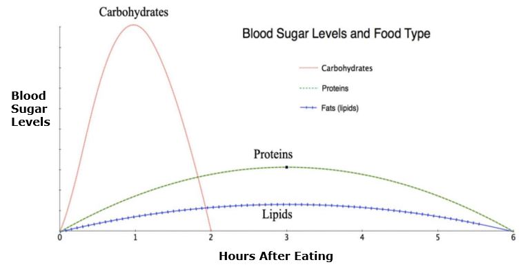 The graph below depicts the different macromolecules present in our bloodstream after eating.