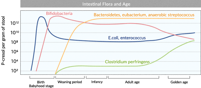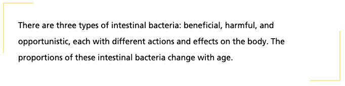 Bacterial groups in the intestines change with age-the percentage of bad bacteria increases as you grow older.