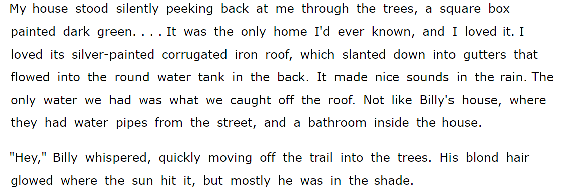 Select the best evidence to support the statement that the narrator's house doesn't have running water.