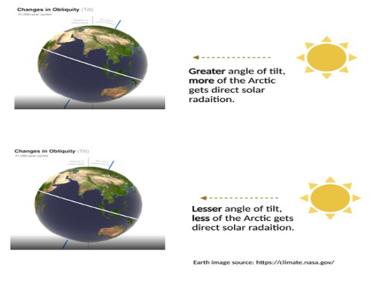 __________ angle of the tilt, the less of the Arctic gets direct solar radiation.