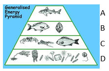 Which letter represents the secondary consumer?