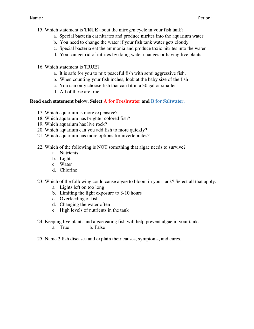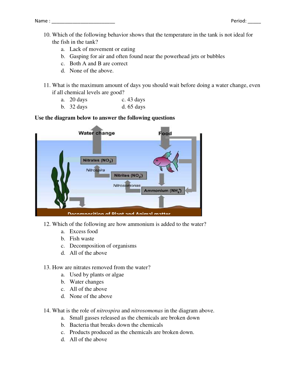 Unit 5 Exam: Aquariums and Nitrogen Cycle
