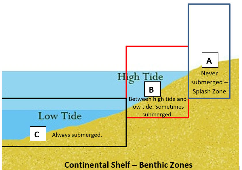 Benthic Zone | arrow_right_alt | The bottom parts of the ocean. The different areas of the ocean floor. Las partes del fondo del océano. Las diferentes áreas del fondo oceánico. |