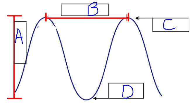 Match the letter with the correct part of the wave that it represents.