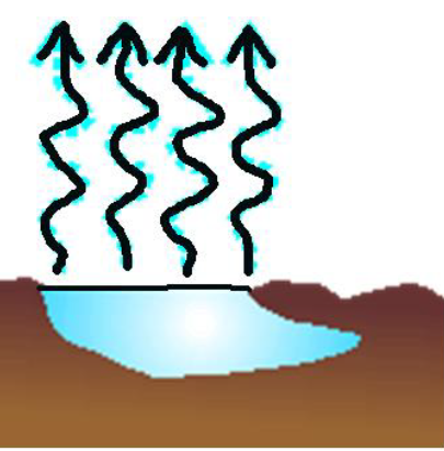 The process of liquid water changing into water vapor. Powered by the sun. | arrow_right_alt | Evaporation |