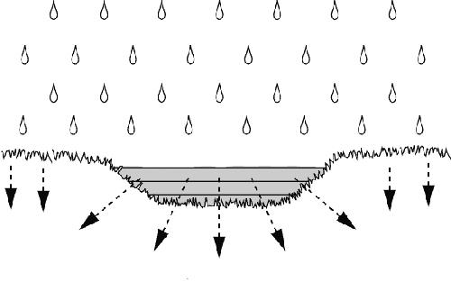 The process of water soaking into the soil and between rock layers. Powered by gravity. | arrow_right_alt | Precipitation |