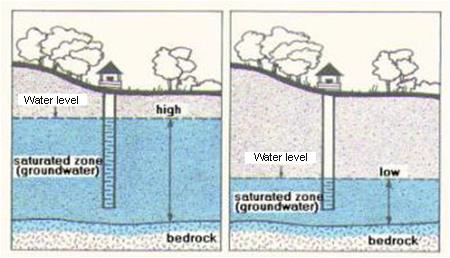 The level where the ground is completely saturated with water. It changes for floods, drought, wells | arrow_right_alt | Water table |